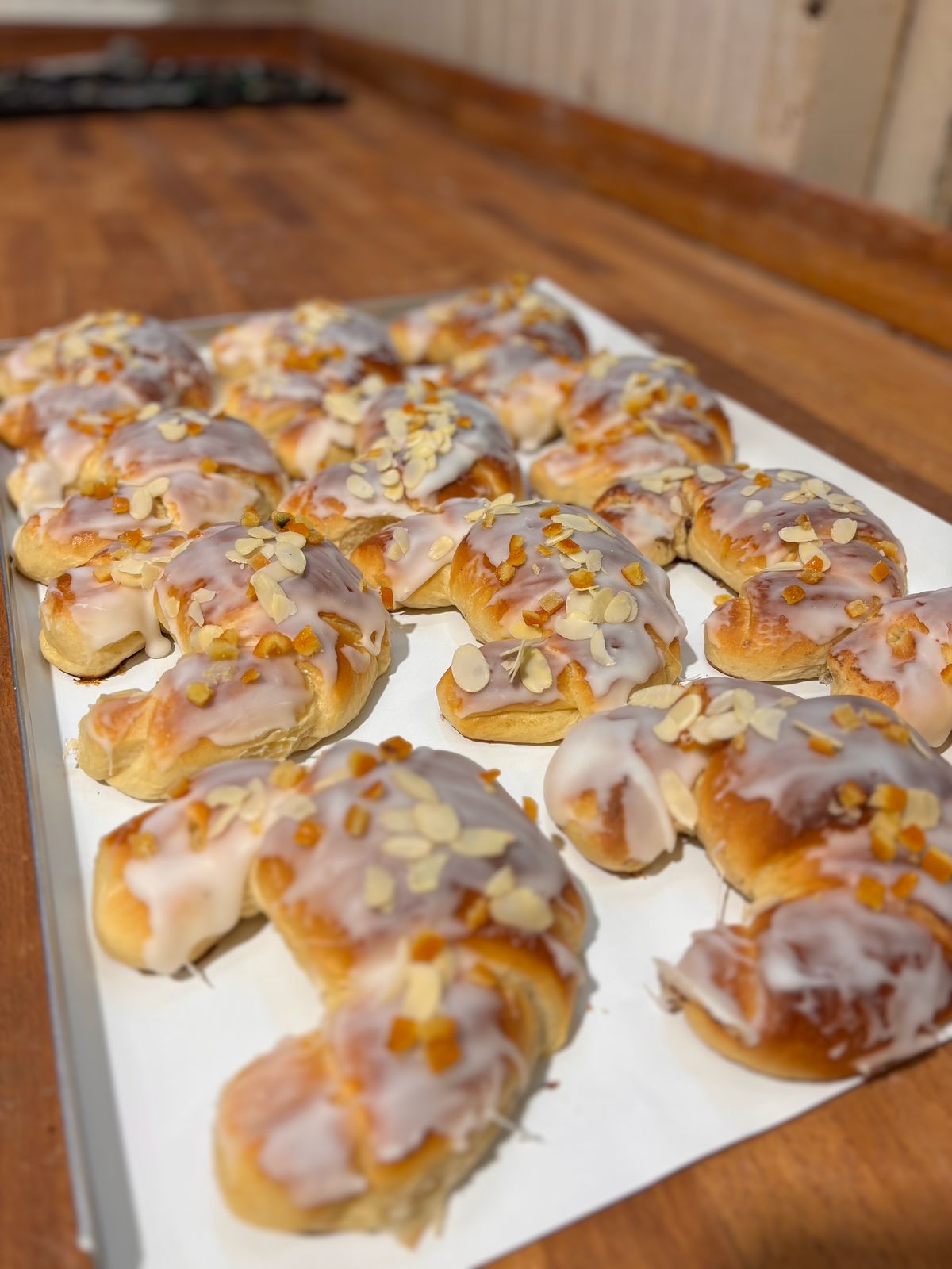 Piekarnia zajmuje się również produkcją wyrobów cukierniczych w szerokim asortymencie. Produkujemy różnego rodzaju drożdżówki, pączki, rogaliki, kruche ciasteczka oraz duży wybór ciast: serniki, skubaniec, makowiec, jabłecznik, babki oraz wyroby okazjonalne jak pierniki i mazurki. Nasze wyroby cukiernicze można skosztować w dwóch naszych kawiarenkach oraz zakupić w sklepie przy Piekarni.